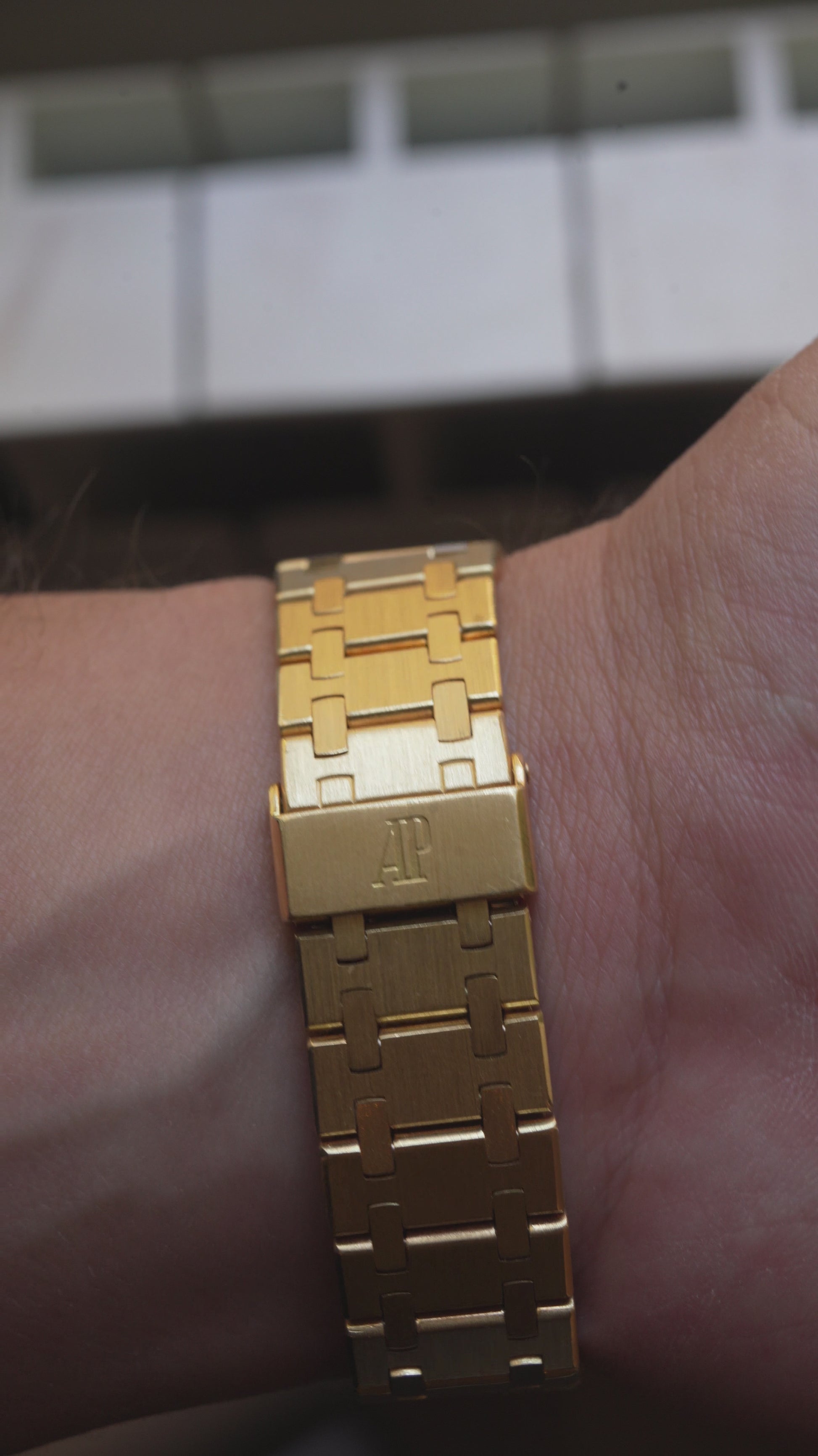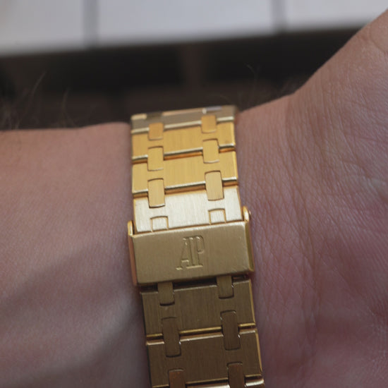 L' Audemars Piguet Royal Oak referenza 4100BA è una delle interpretazioni più raffinate dell'iconico modello disegnato da Gérald Genta. Realizzato in oro 18 carati, presenta una cassa da 35,5 mm con la caratteristica lunetta ottagonale e un accattivante quadrante grigio che ha sviluppato una splendida patina nel tempo, conferendo al pezzo unicità e fascino vintage. Il bracciale in oro, adatto a polsi fino a 18 cm e dotato di chiusura deployante a scomparsa, garantisce eleganza e comfort al polso.