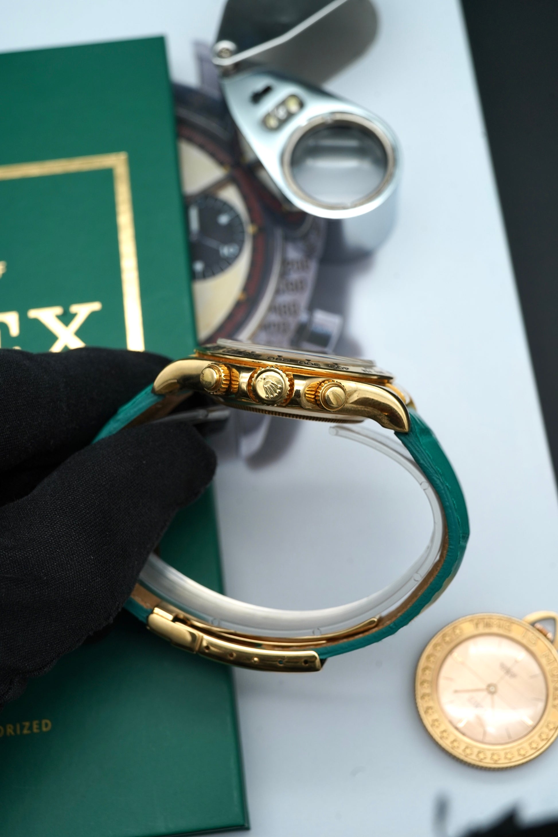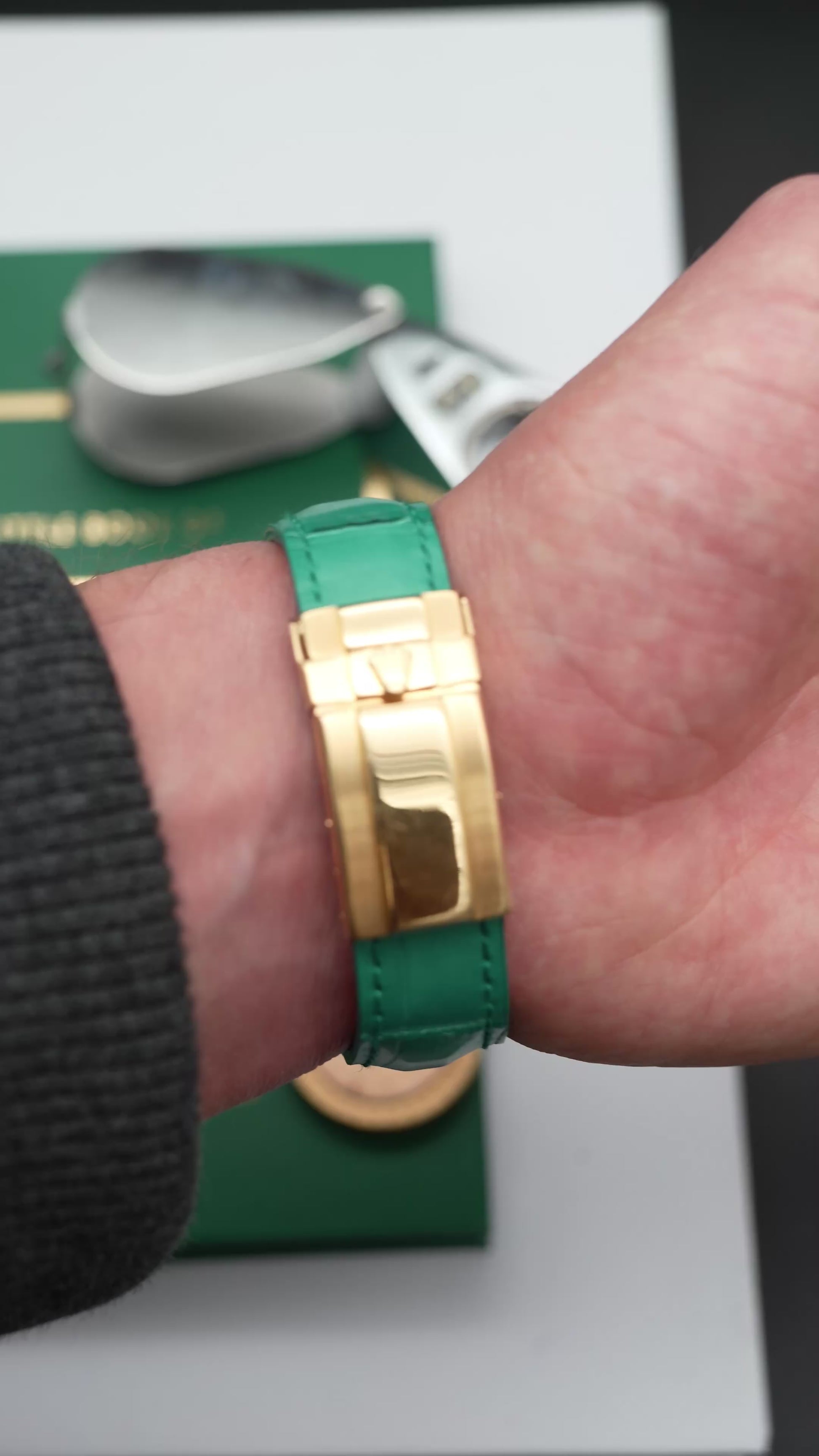 • Strap: Original green crocodile leather