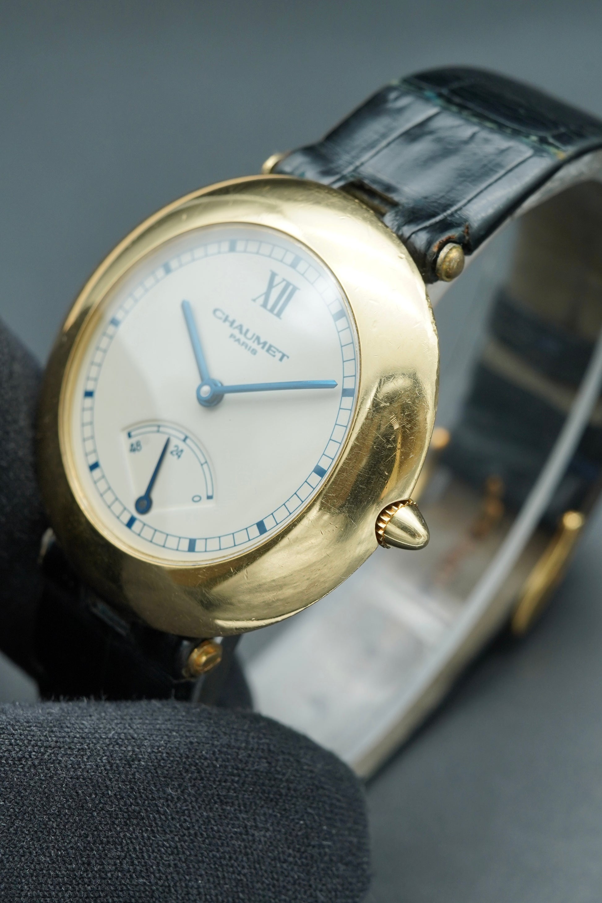 The model is completed by an original leather strap with a gold pin buckle, combining elegance and comfort, making the Chaumet Disco Volante suitable both for a collection and daily wear.